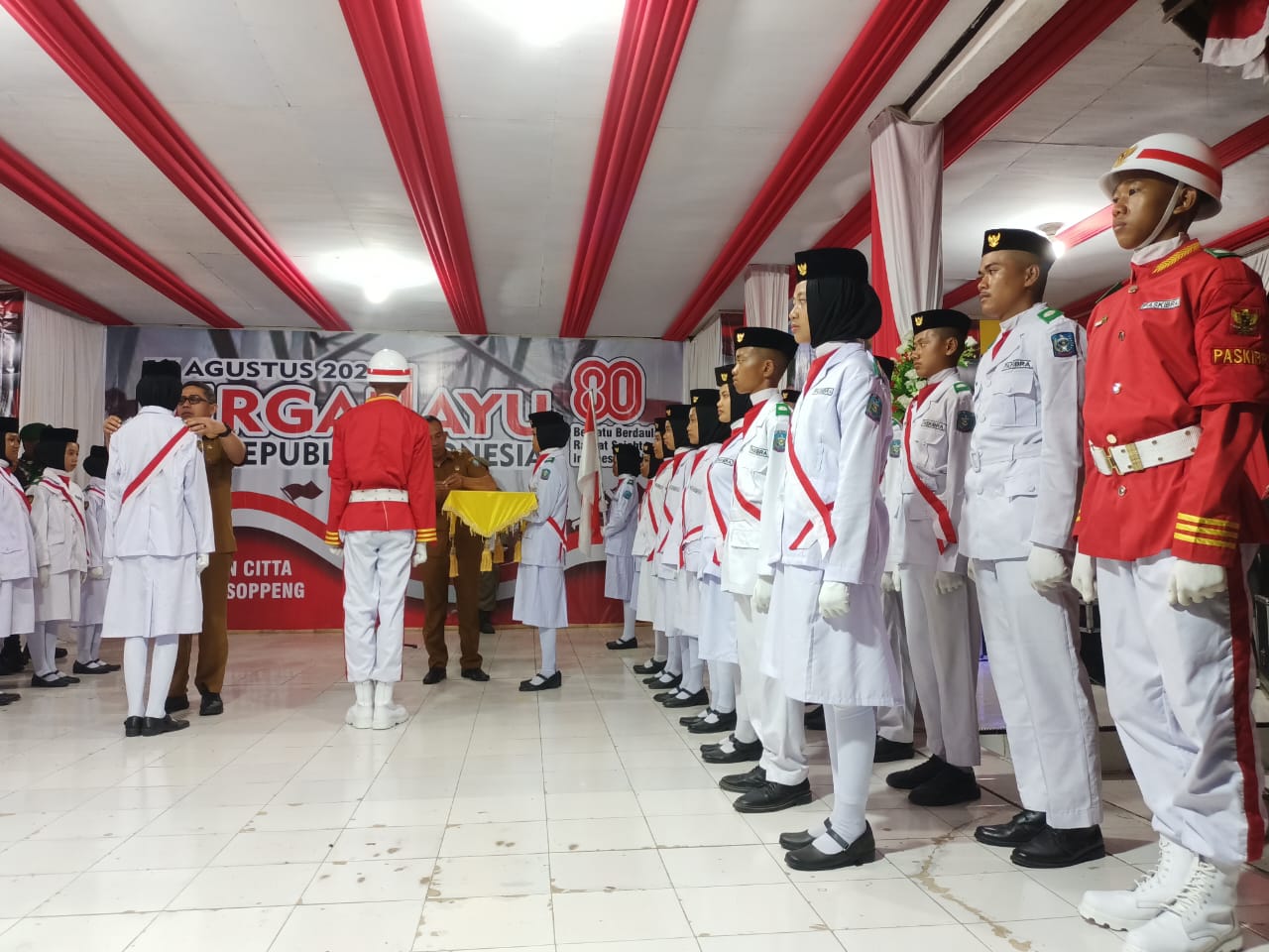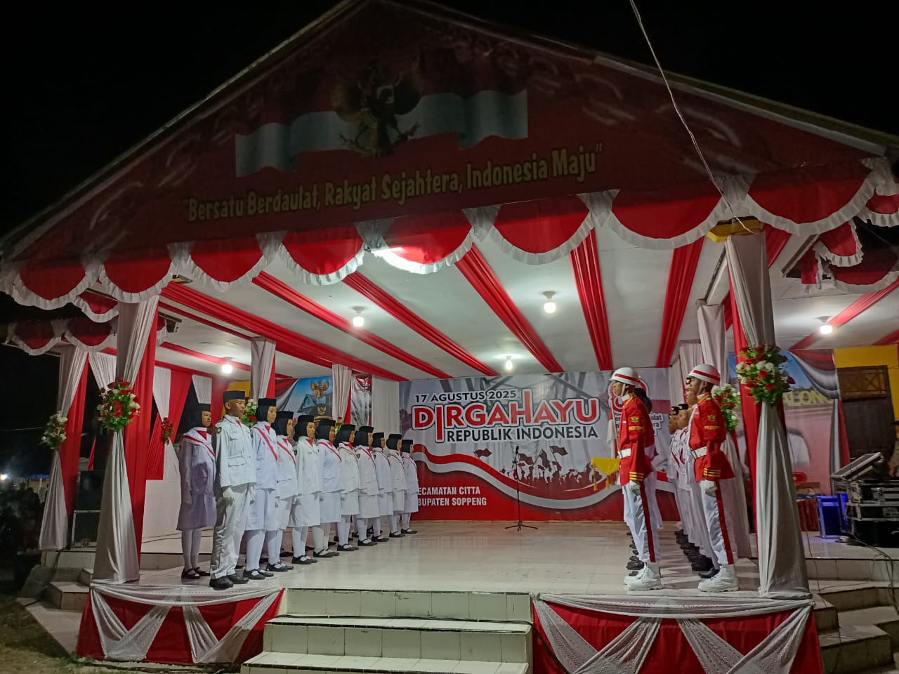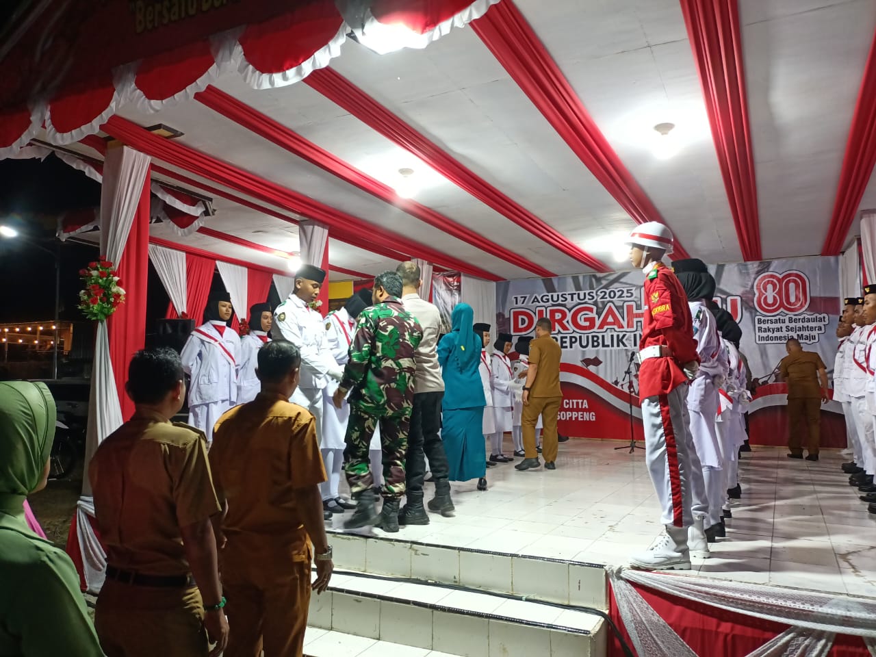 Kampiri– Panitia Pelaksana Peringatan HUT Ke 80 Republik Indonesia melaksanakan acara pengukuhan Pasukan Pengibar Bendera (PASKIBRA) HUT Ke 80 RI Tingkat Kecamatan Citta pada tanggal 15 Agustus 2025 di Tribun Lapangan Sepakbola Petta Pabbicarae Desa Kampiri.